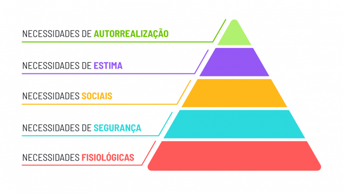 Na base da Pirâmide das Necessidades de Maslow está o que é essencial para a nossa sobrevivência como se alimentar, descansar, beber água, ir ao banheiro, etc.